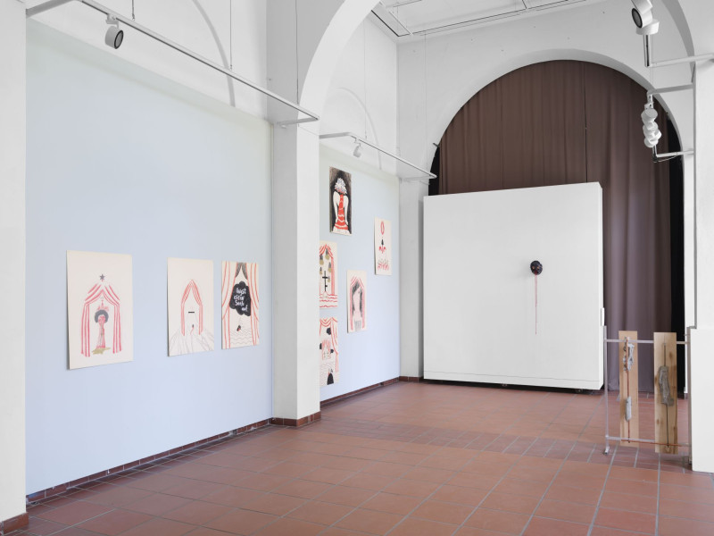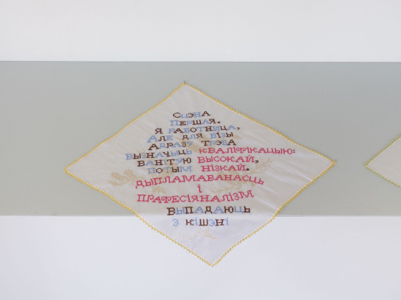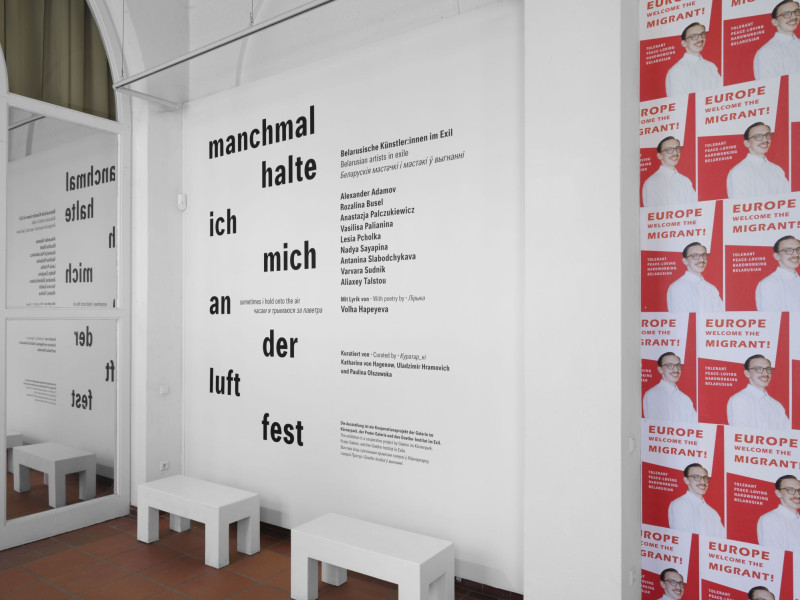 In der Ausstellung manchmal halte ich mich an der luft fest schauen junge belarusische Künstler:innen im Exil zurück auf die Proteste, die ihr Leben radikal verändert haben, und auf die darauf folgenden Jahre. In ihrer Kunst beschäftigen sie sich mit den Repressionen in ihrem Heimatland und der Angst vor dauernder Überwachung, die auch im Exil nicht endet. Sie befassen sich mit dem Zustand des Nichtdazugehörens und den endlosen Schleifen der staatlichen Bürokratien, mit denen sie im Ausland konfrontiert werden. Die Ausstellung ist auf der Suche nach einem Ausdruck für die persönliche Situation vieler Künstler:innen im Exil heute, die keineswegs nur belarusische betrifft.