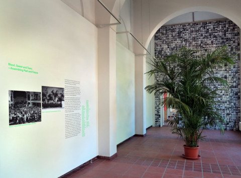 „Blood, Sweat and Tears“ verknüpft und überlagert Bild- und Textmaterial von damals mit Statements und Porträts von heute. Unterschiedliche Zeitebenen und verschiedene Materialitäten durchdringen einander zu einer raumgreifenden Installation. „Blood, Sweat and Tears“ versteht sich als künstlerische Suche nach dem, was – über zeitliche und räumliche Grenzen hinweg – all jene verbindet, die sich für eine friedvolle Welt engagieren.