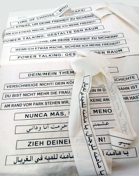 In China, the “women’s script” Nü shu - banned since 1983 - existed since the third century AD and was used, among other things, in arts and crafts: Women were forbidden from lessons in the “men’s script” Nan shu. In Tanzania, women wear inscribed kangas [Swahili for: guinea fowl] - cotton wrap-arounds with meaningful sayings that serve to convey messages of love, religious sayings, or everyday concerns, thus expressing them nonverbally: The wrap-around cloths become communication channels for their wearers in public spaces.